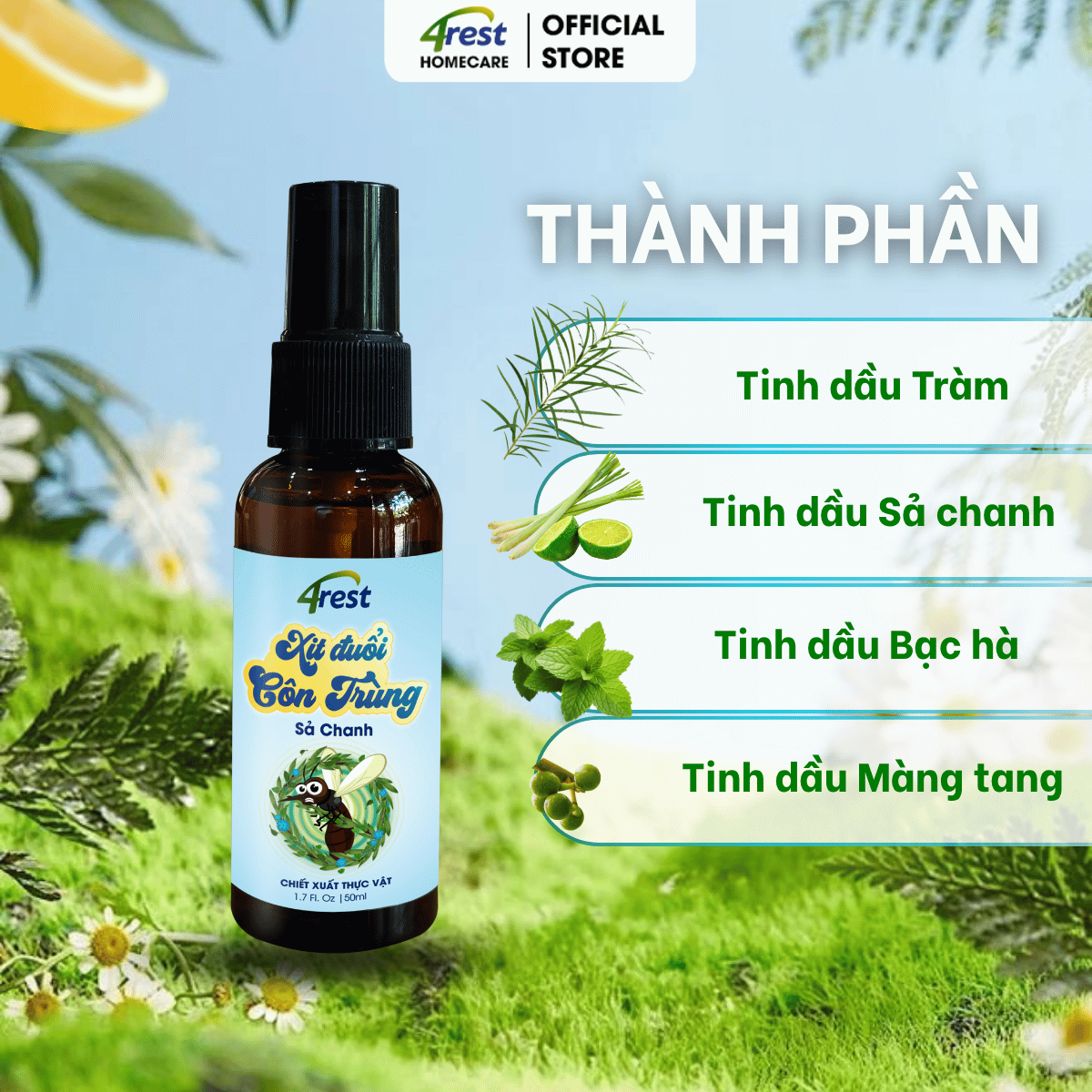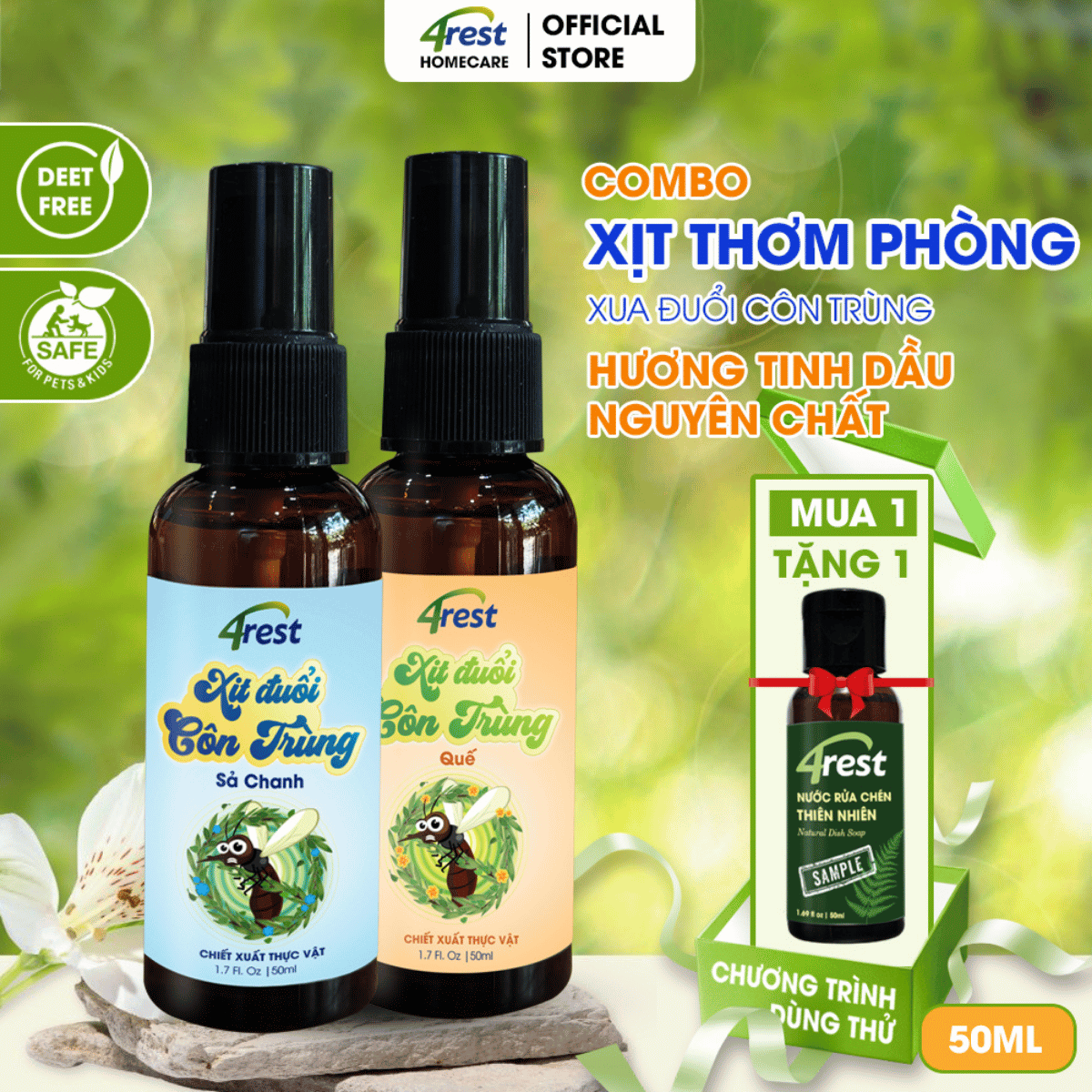 4Rest -Combo 2 Chai Xịt Đuổi Muỗi & Khử Mùi Tinh Dầu Thiên Nhiên 50ml – An Toàn Bé & Gia Đình